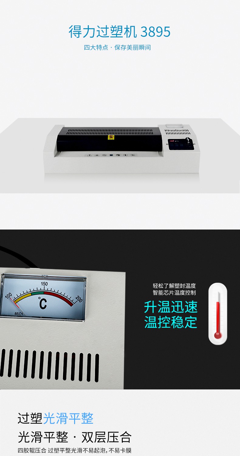 得力(deli) 3895 照片塑封机A3/A4过塑机 办公过胶机 相片热裱/冷裱覆膜机