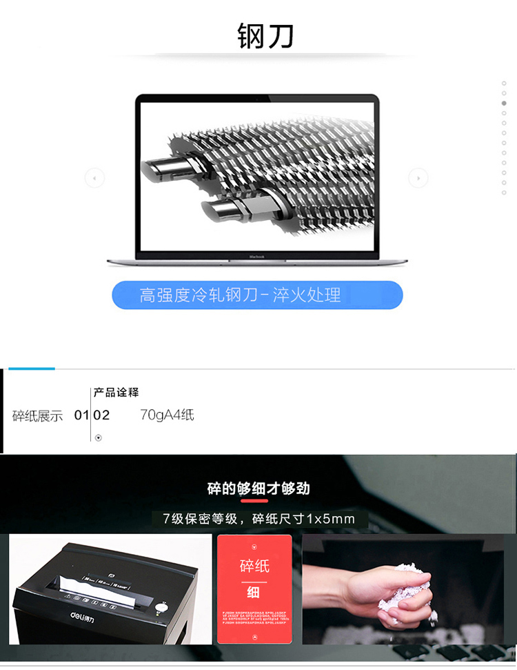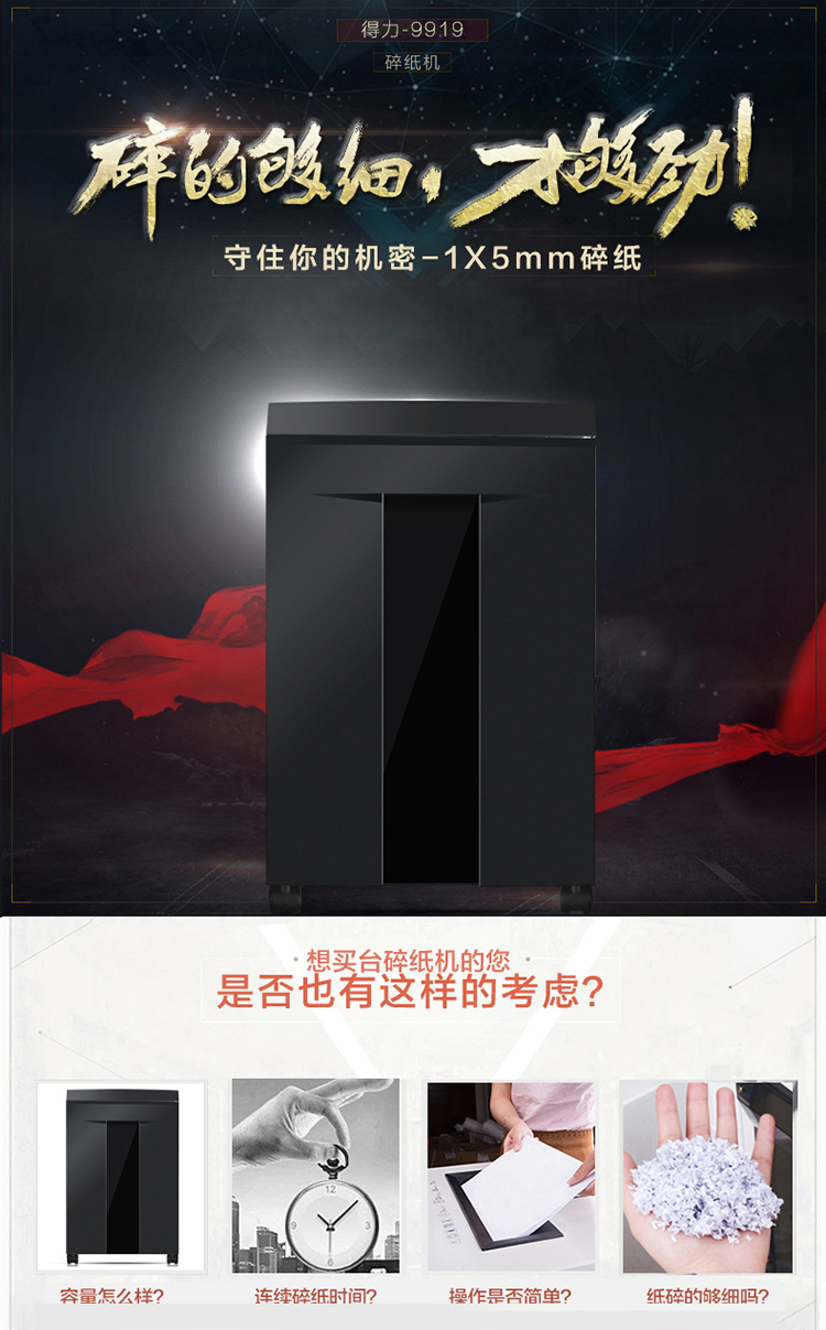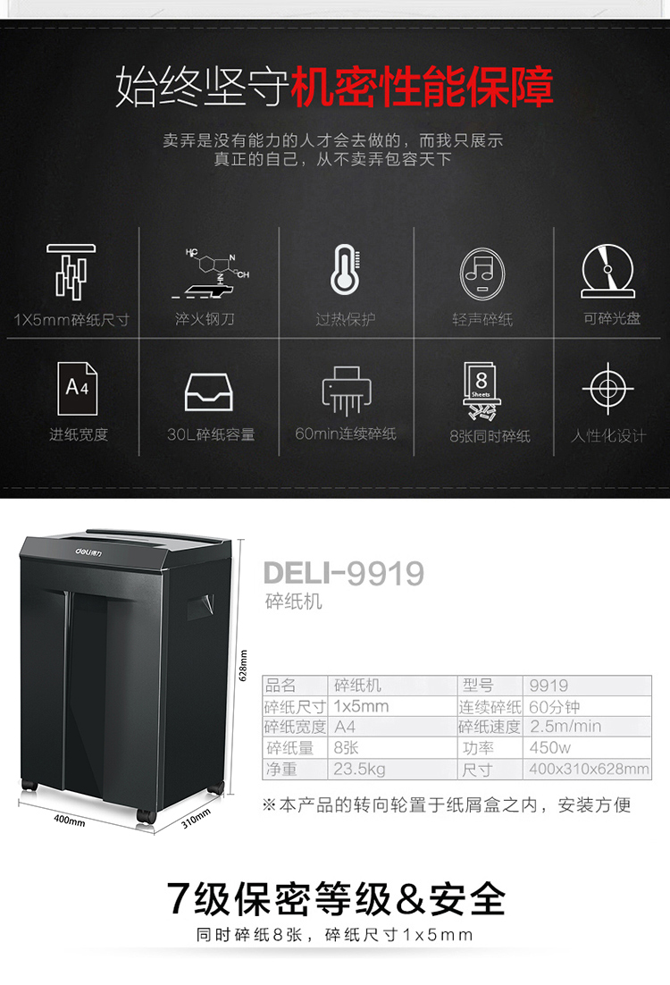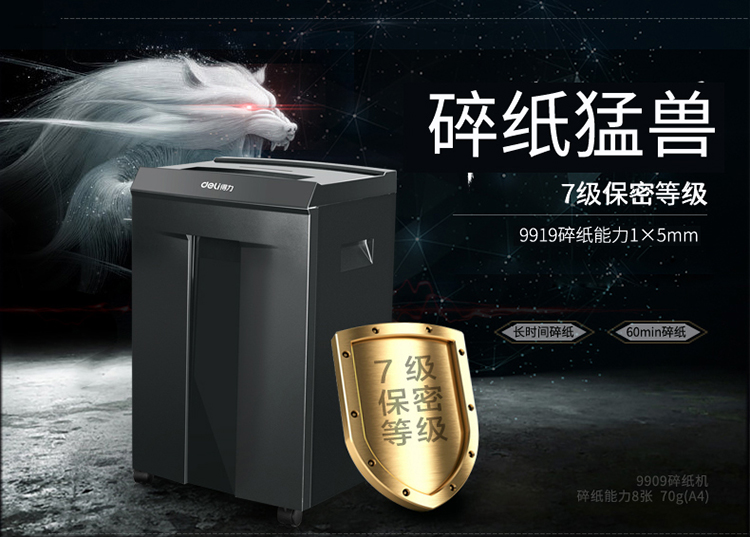 商品名称:得力(deli)9919 高保密大容量碎纸机 7级保密碎纸机