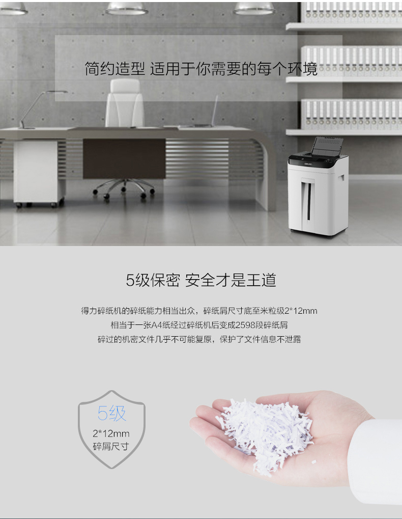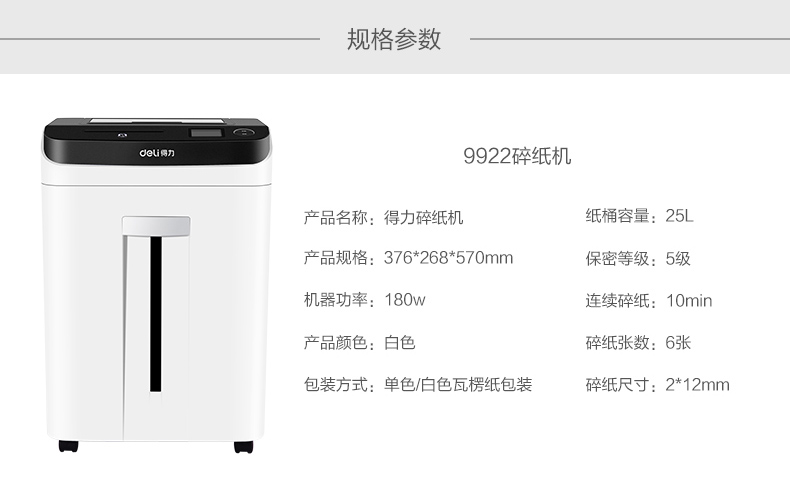 商品名称:得力 (deli)9922 办公家用电动碎纸机 静音5级保密粉碎机