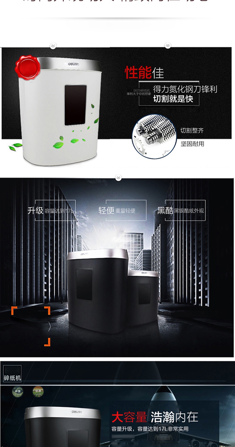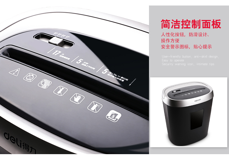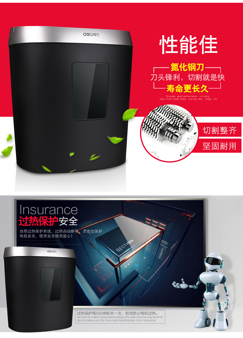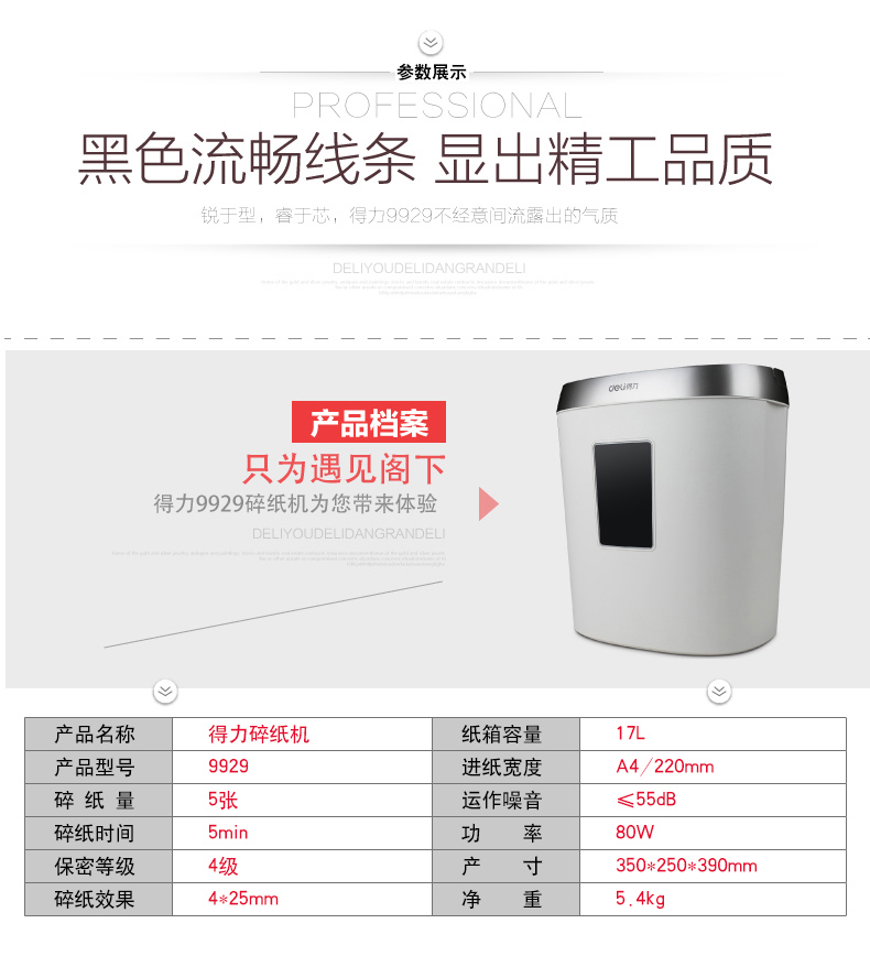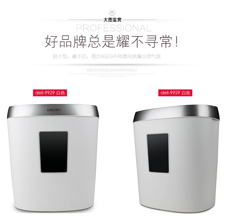 商品名称:得力(deli) 9929碎纸机 电动静音大功率4级保密 小型迷你粉碎机 黑色