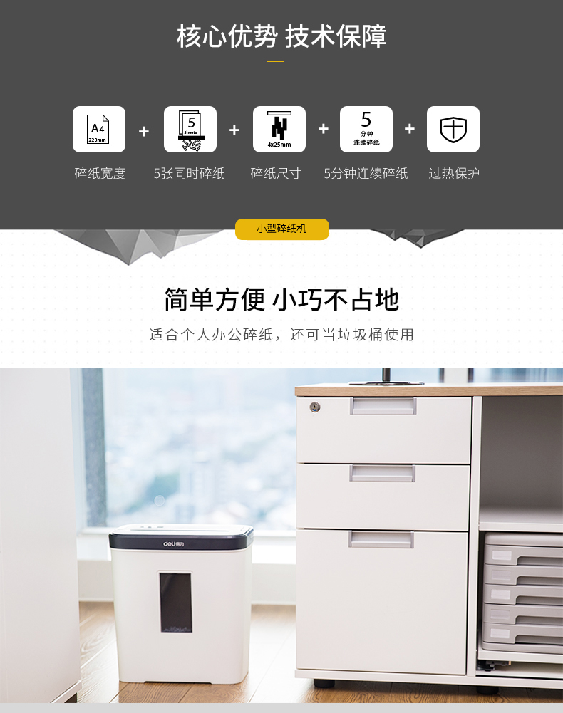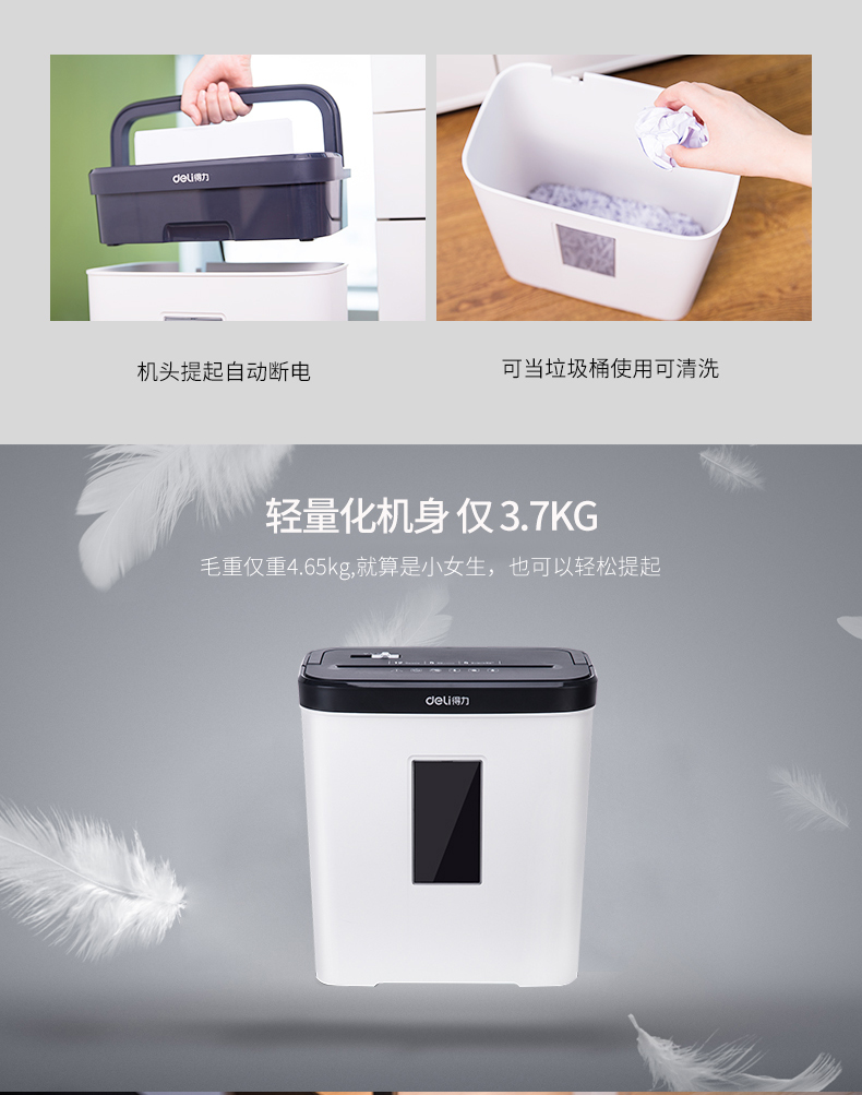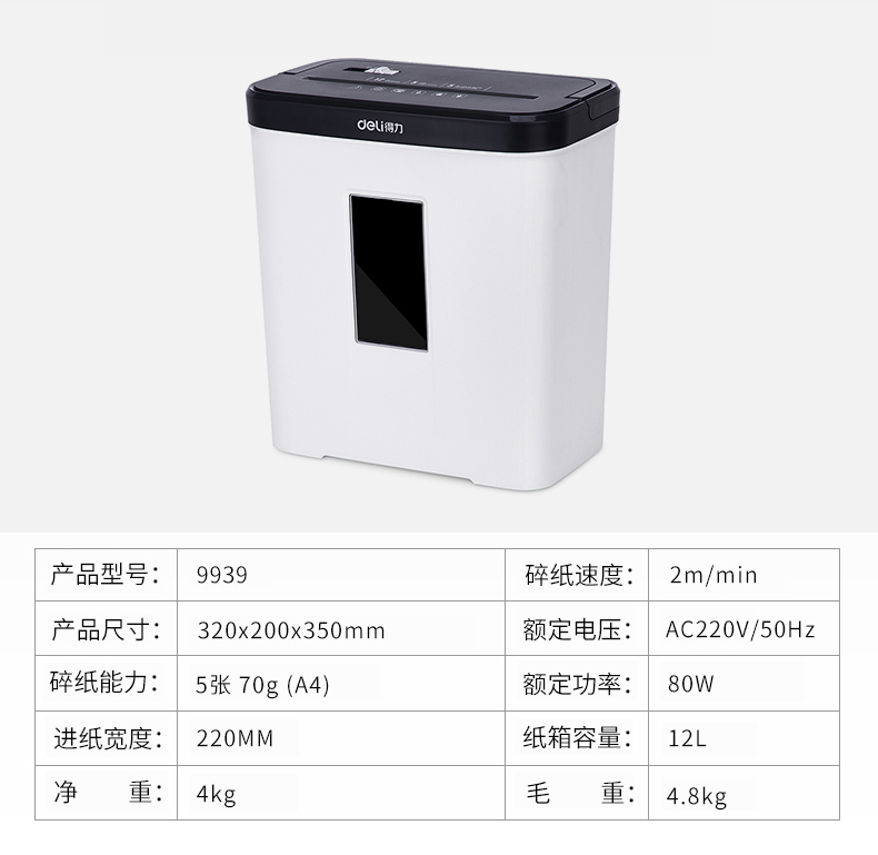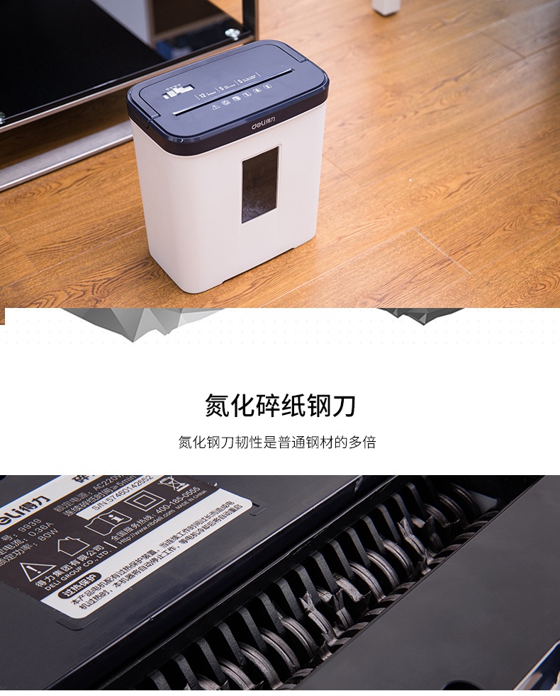 商品名称:得力(deli) 9939碎纸机 静音大功率保密颗粒粉碎机 白色