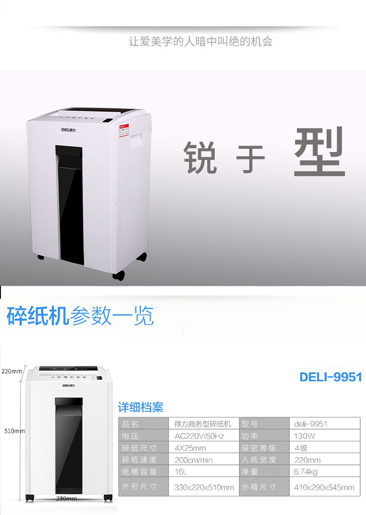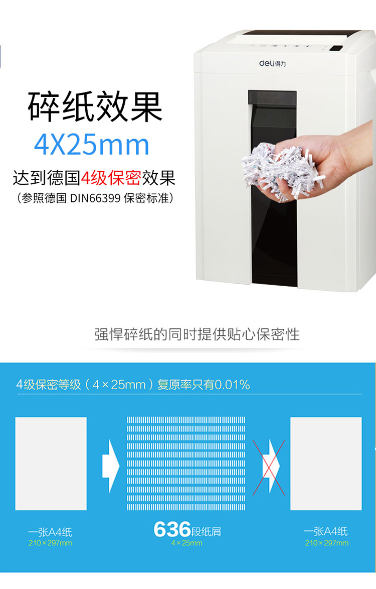 商品名称:得力(deli)9951 机密卫士系列智能专业办公碎纸机 白色