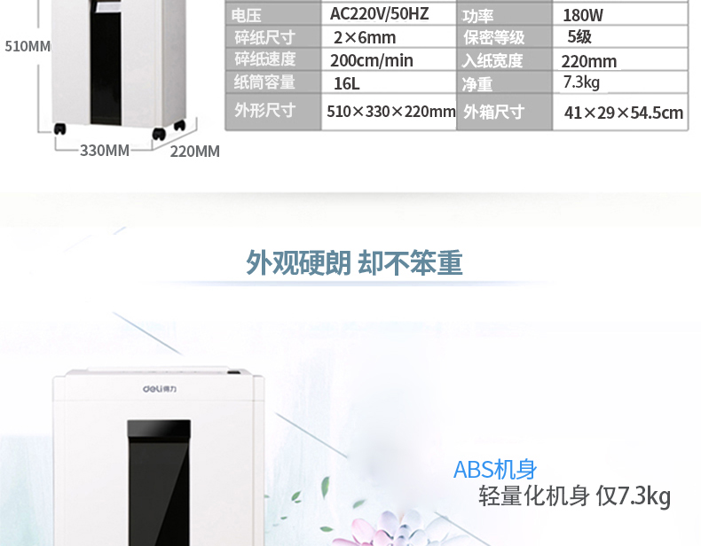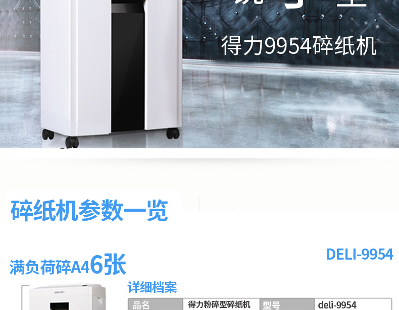 商品名称:得力(deli)9954米粒级高保密碎纸机 5级保密办公碎纸机