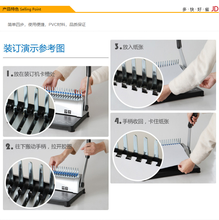 得力(deli) 3836 21孔耐折装订胶圈300*φ12mm 100支/盒 黑色