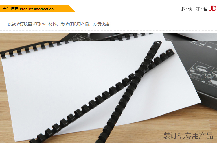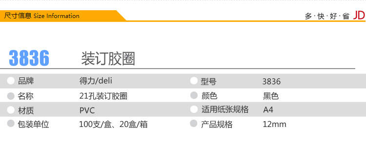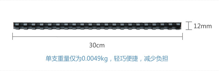 商品名称:得力(deli) 3836 21孔耐折装订胶圈300*φ12mm 100支/盒 黑色