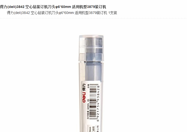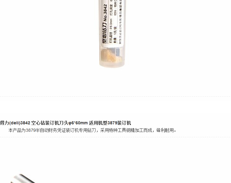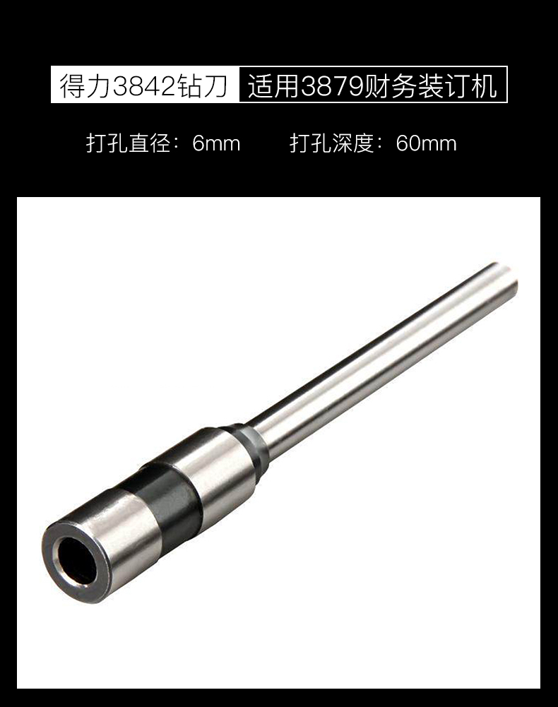 商品名称:得力 3842 空心钻刀 刀头财务凭证装订机配套专用φ6*60mm钻头 适用3879装订机