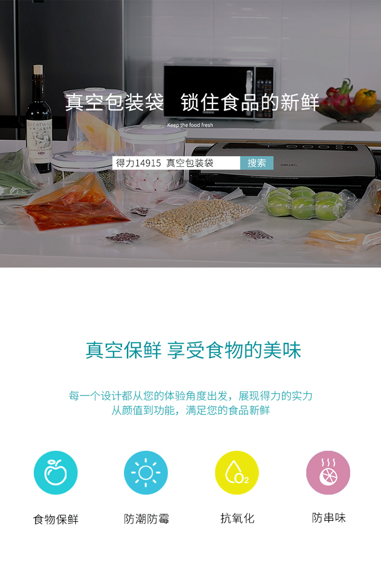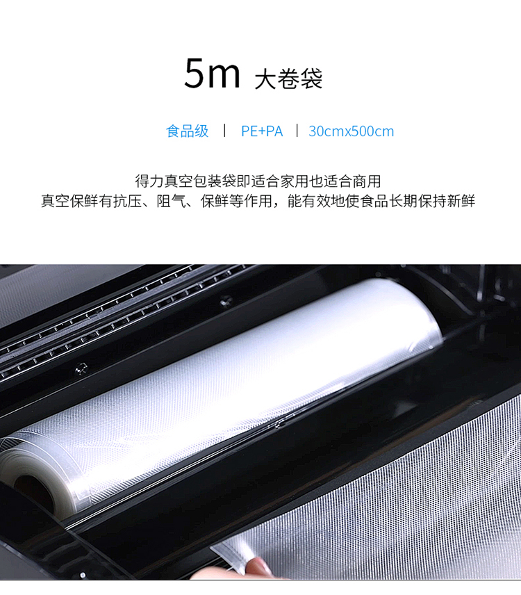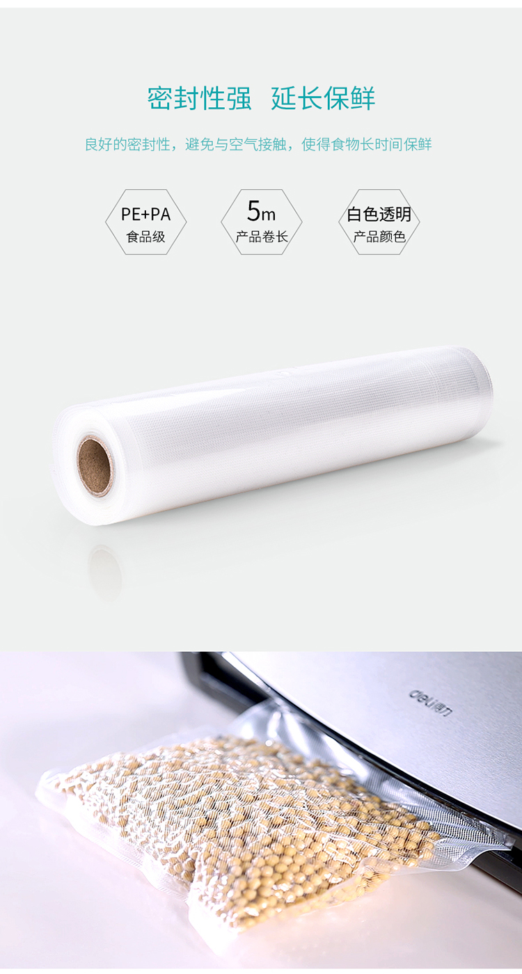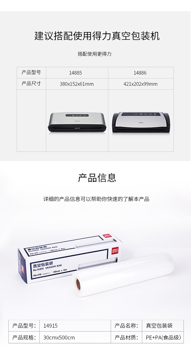 商品名称:得力(deli)14915 真空机包装袋 食物真空保鲜袋(30cm*5m 一卷/盒)