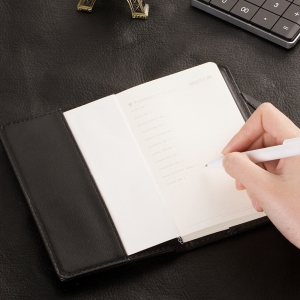 商品名称:得力(deli) 3336 64K/120页简约扣带皮面本 记事本 笔记本子 黑色