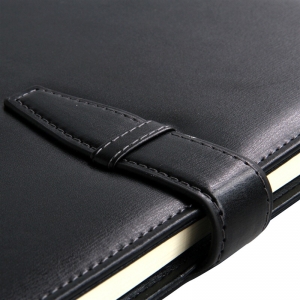 - 商品名称:得力(deli) 3335 25K/120页简约扣带皮面本/记事本笔记本子 黑色
