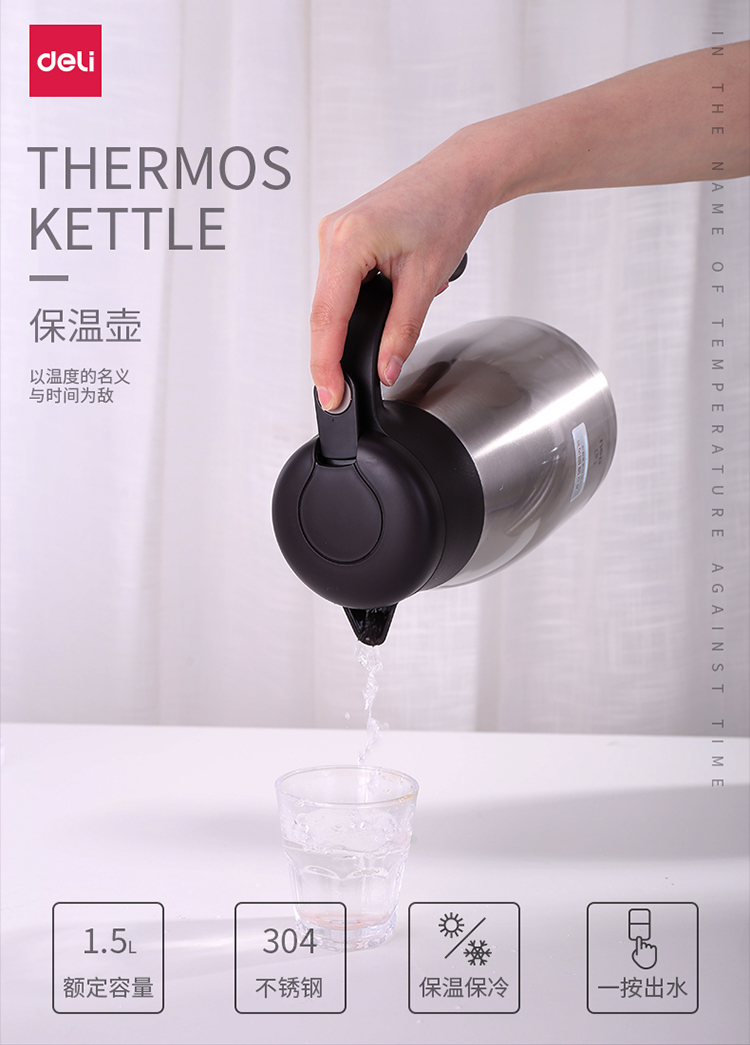 商品名称:得力(deli)2L不锈钢真空保温壶 家用暖水壶 17755