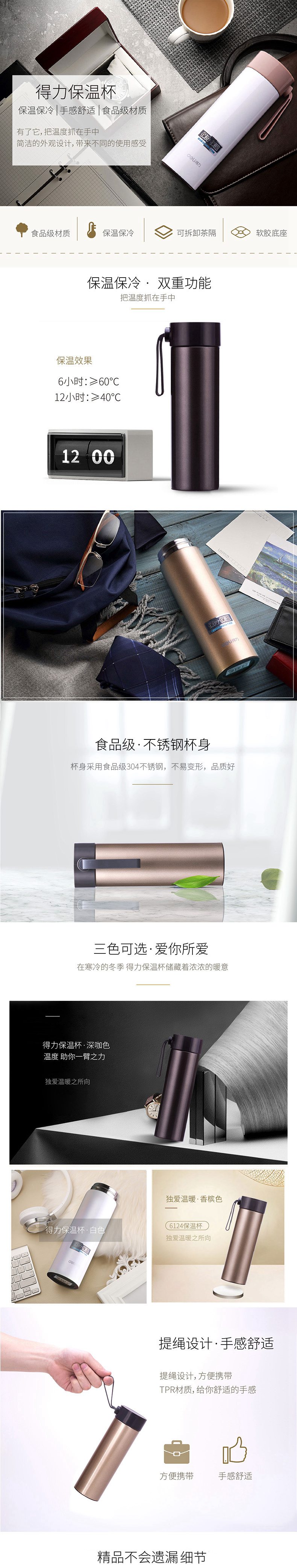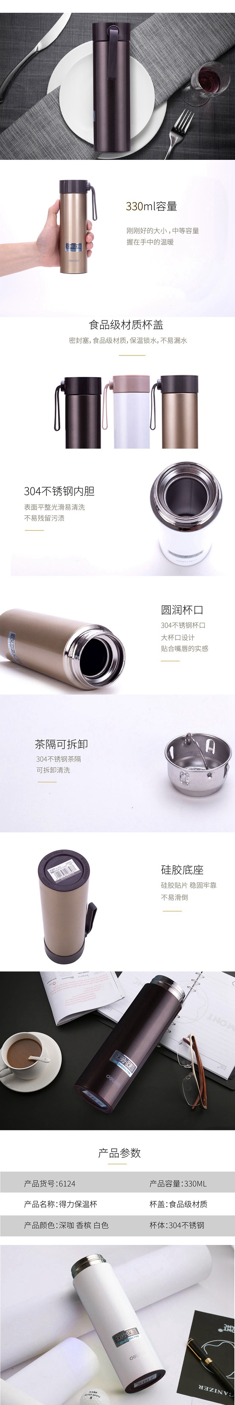商品名称:得力(deli)6124 高真空不锈钢时尚保温/保冷水杯 白色 330ml