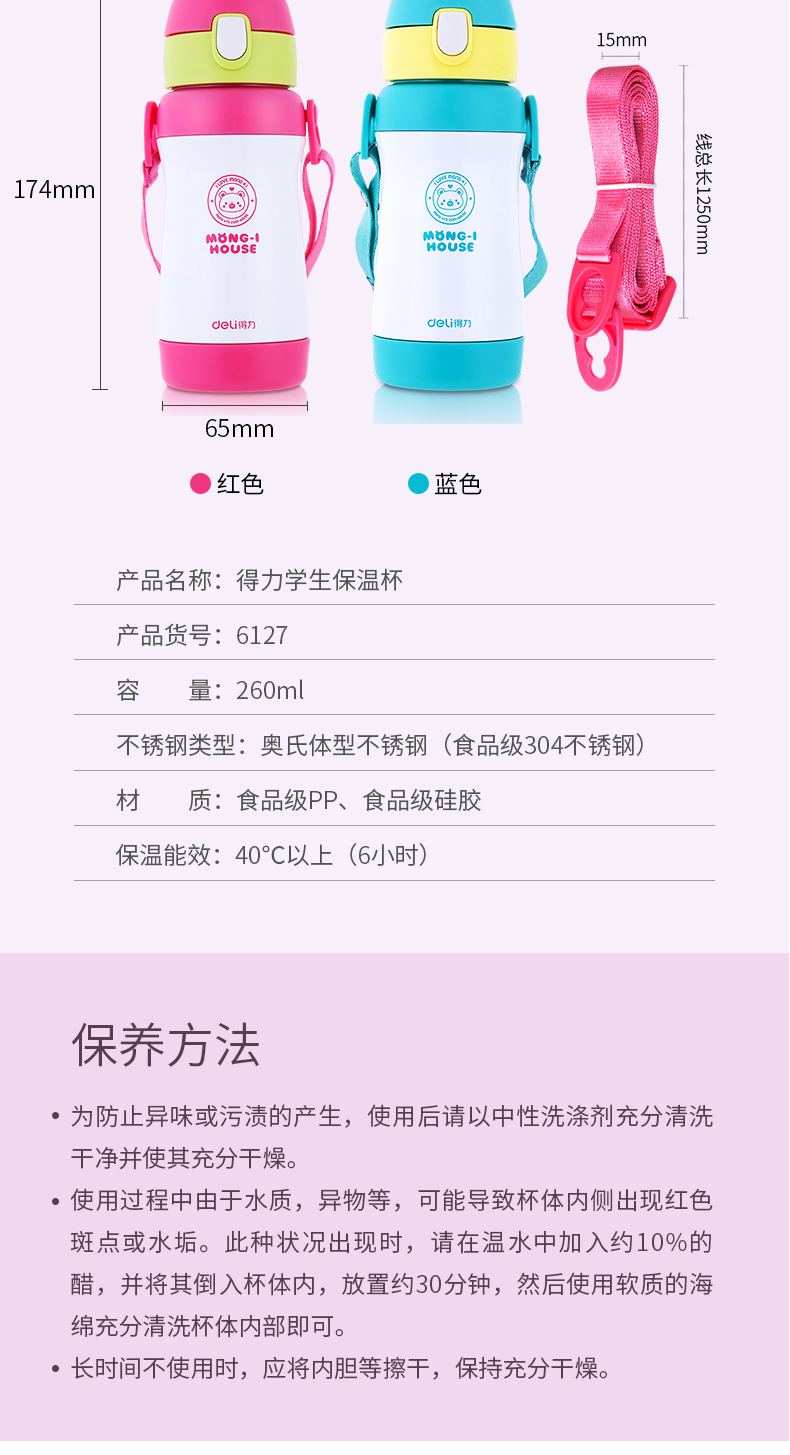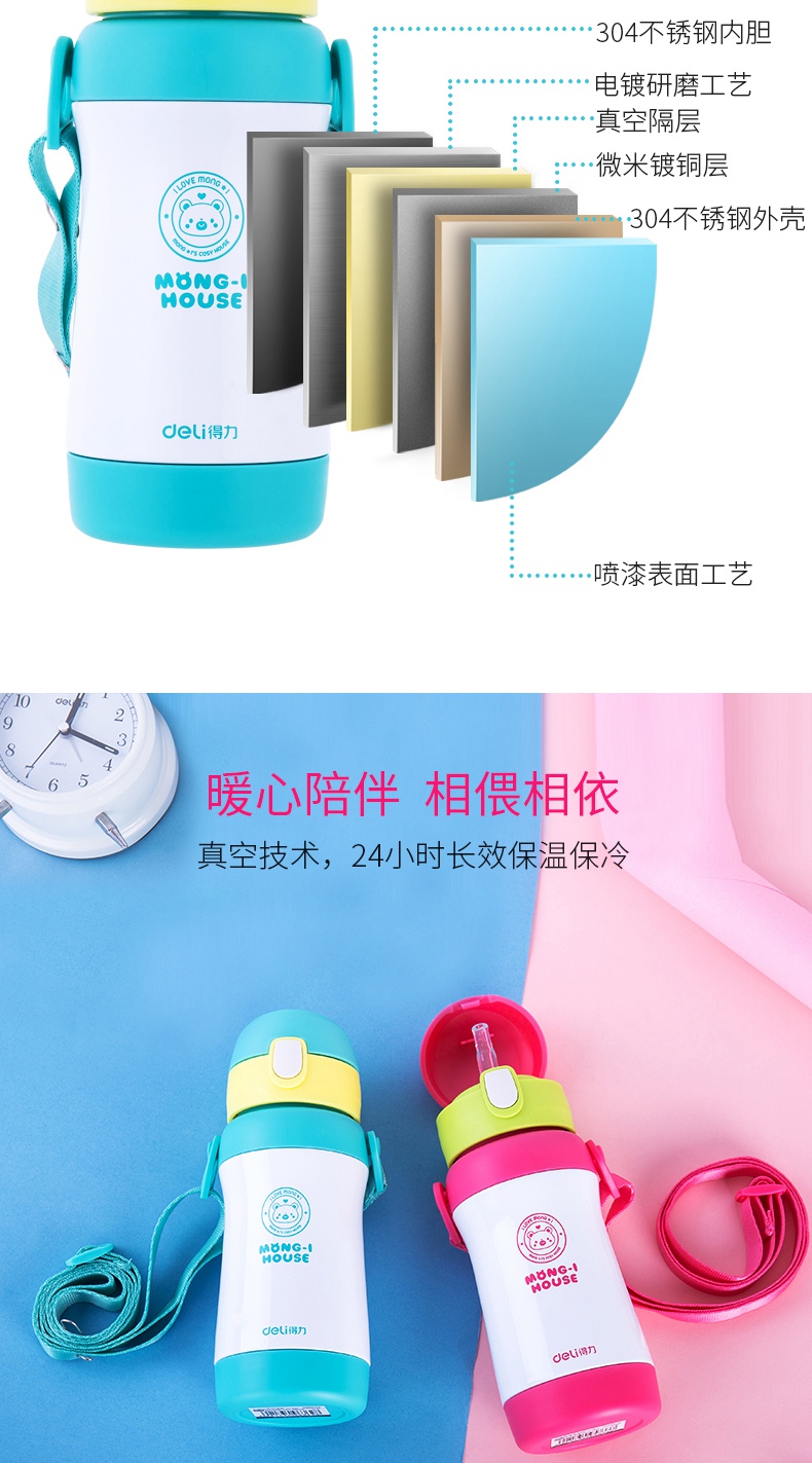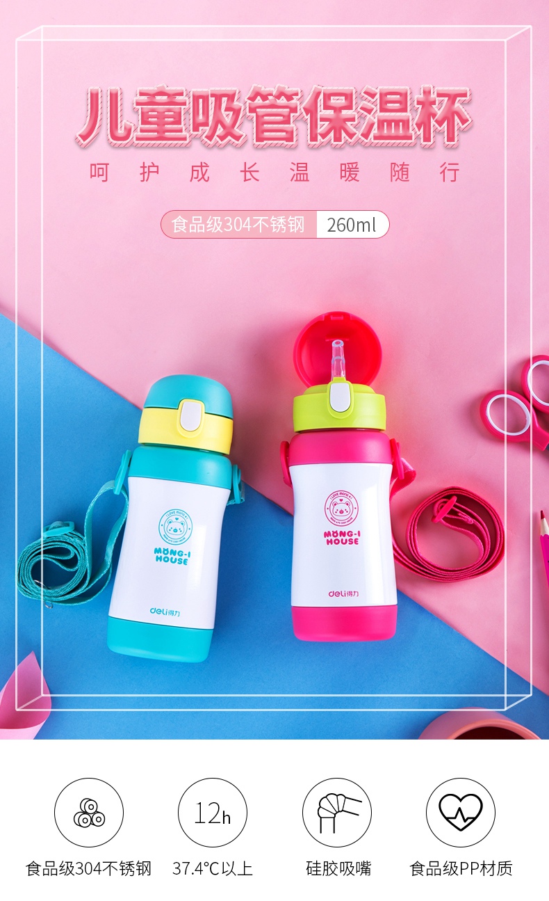 商品名称:得力 6128儿童吸管保温杯320ml 蓝色