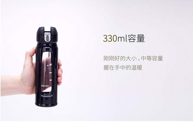 得力(deli)6124 高真空不锈钢时尚保温/保冷水杯 白色 330ml