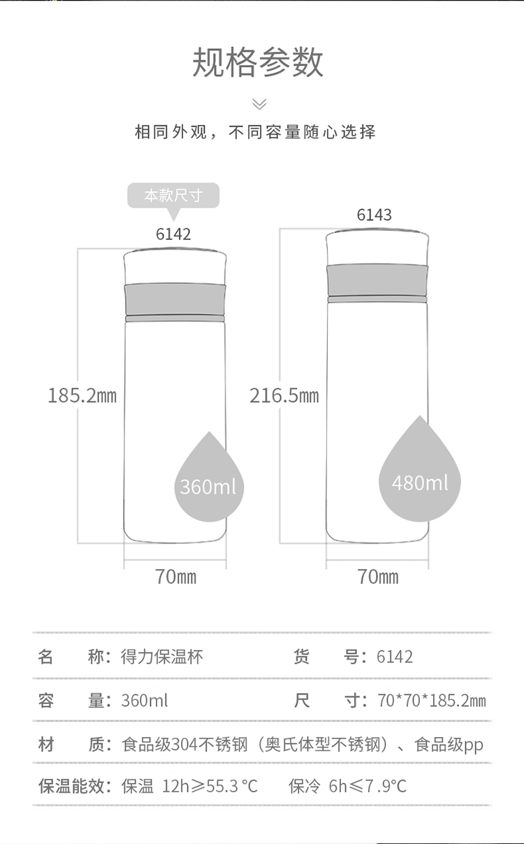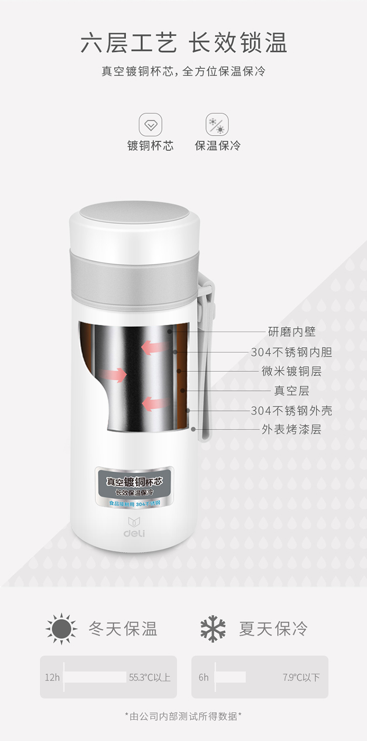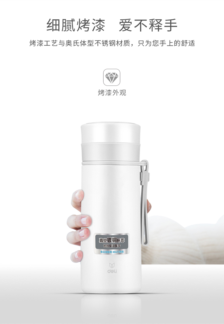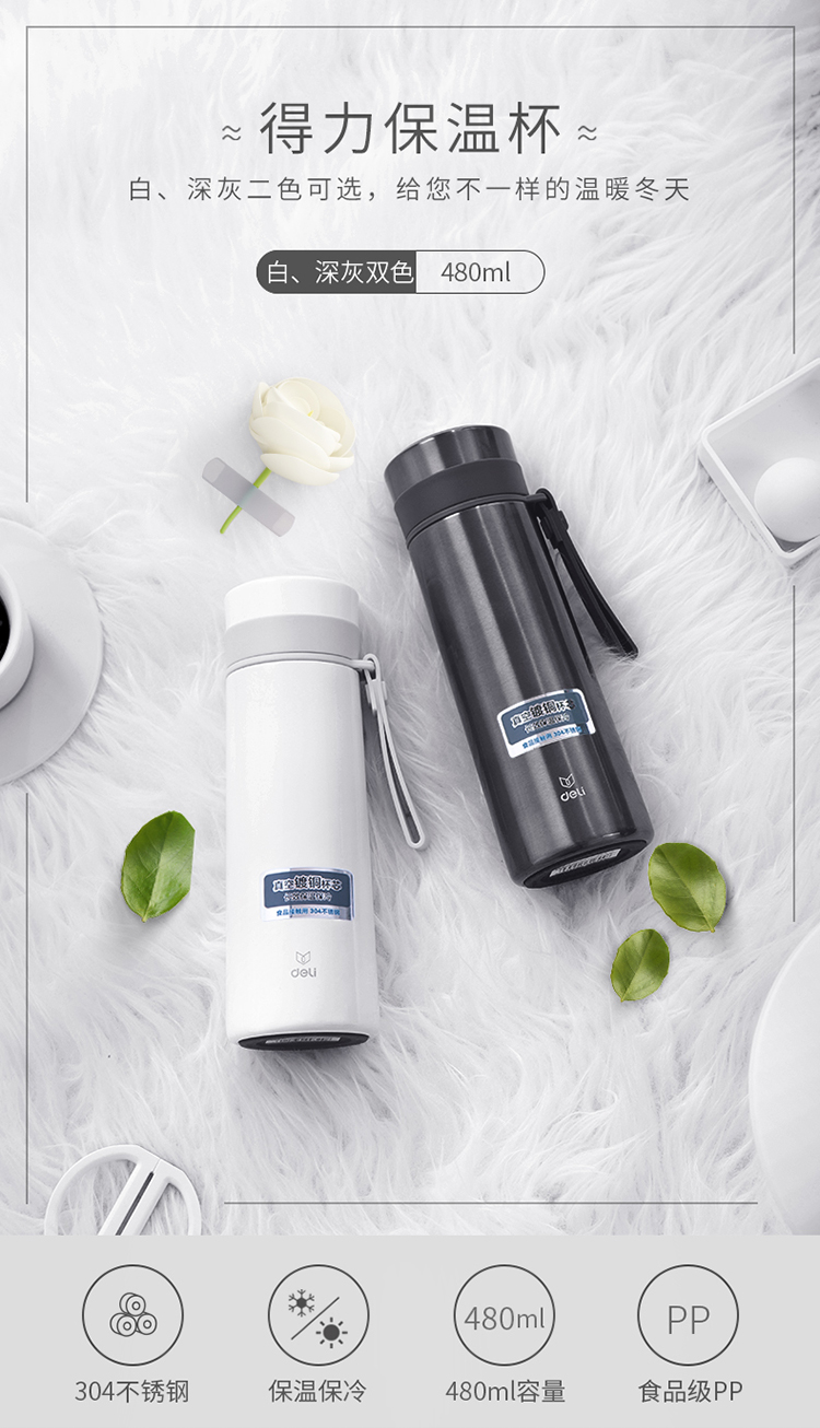 商品名称:得力(deli) 6143 真空不锈钢保温杯 水杯 480ml 深灰