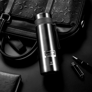 得力(deli) 6143 真空不锈钢保温杯 水杯 480ml 深灰