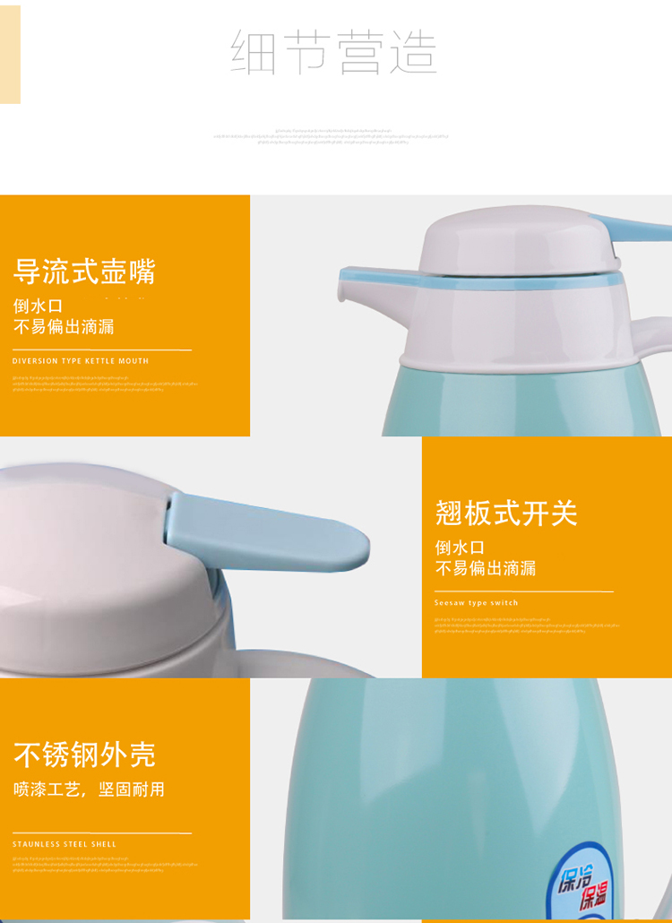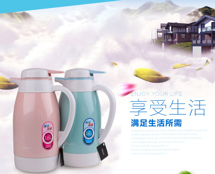 商品名称:得力(deli)8964 不锈钢外壳玻璃真空内胆保温壶 1.6L 蓝色