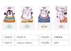 商品名称:得力 FA540-31 学生 A5/40张 缝线本 萌宠家族软面抄笔记本子 款式随机