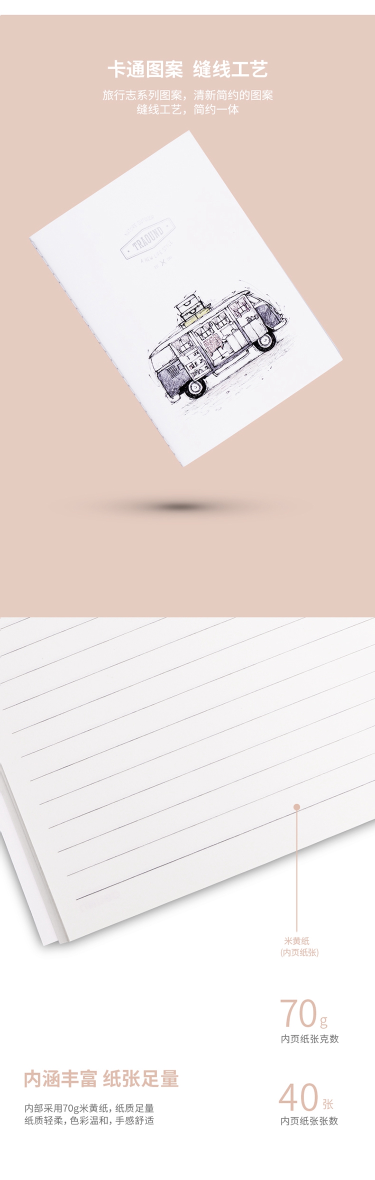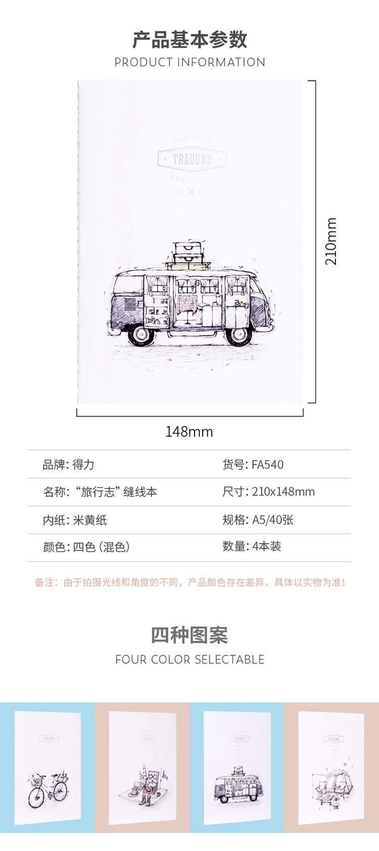 商品名称:得力 (deli) FA540-4 旅行志系列 缝线软抄本记事本 A5 /40页 4本装