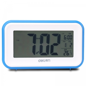得力(deli)8801 闹钟 多功能电子钟 夜间带背光闹钟 蓝色