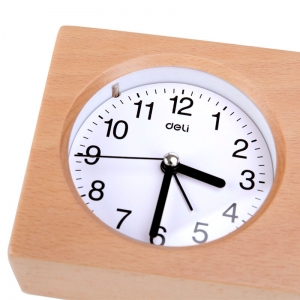 得力(deli) 8816 静音正方形榉木闹钟贪睡闹钟 木纹色