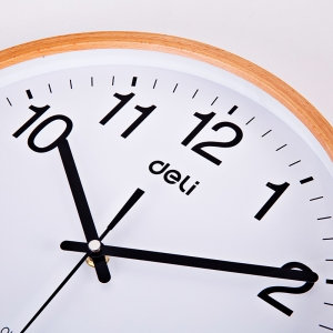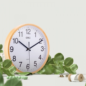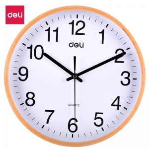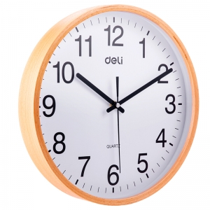 得力(deli) 8818 时尚原木静音挂钟 客厅圆形榉木时钟 直径30cm 木纹色