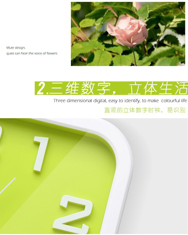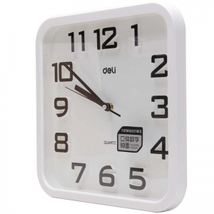 商品名称:得力(deli)8949 静音挂钟 立体数字钟面方形33*33cm 白色