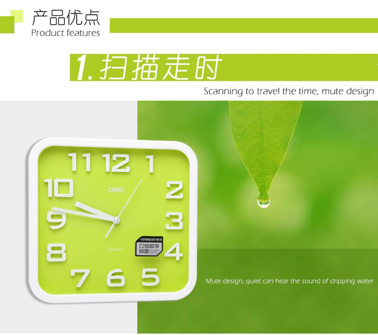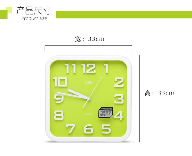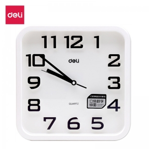 得力(deli)8949 静音挂钟 立体数字钟面方形33*33cm 白色
