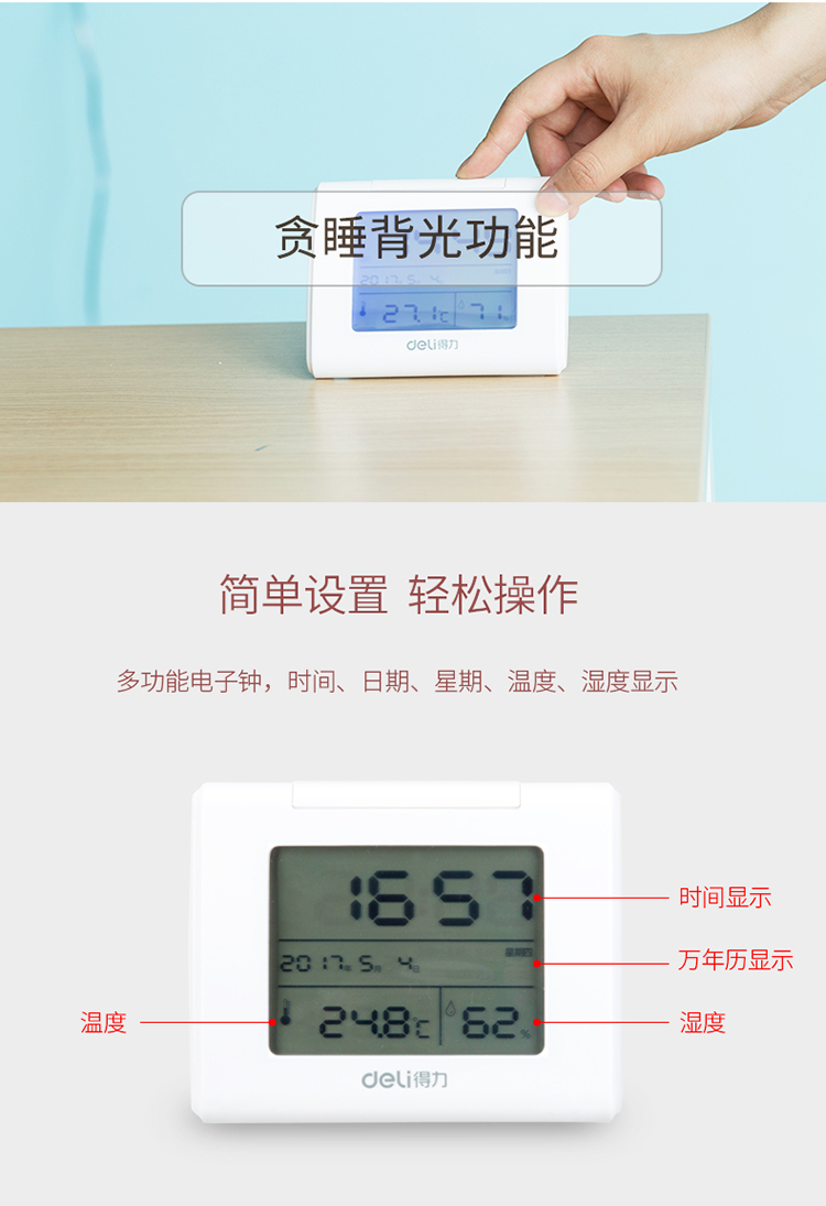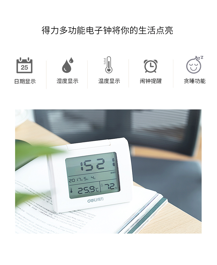 商品名称:得力(deli) 9026 大屏幕数显多功能电子闹钟