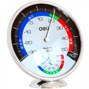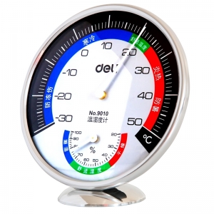 商品名称:得力(deli)9010 室内外温度计 湿度计温湿两用 银色