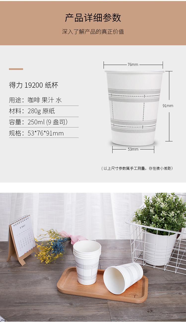 商品名称:得力(deli)19200 加厚一次性纸杯 50个装