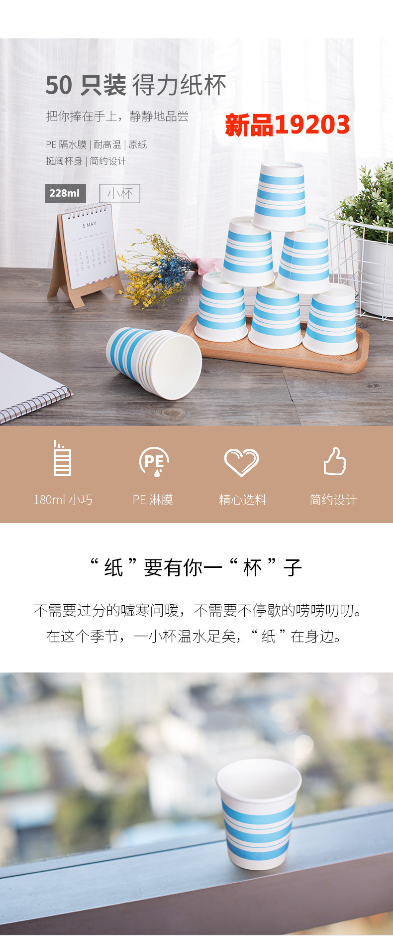 商品名称:得力(deli) 19203 一次性纸杯 不易漏水清洁无味 228ml/50只装