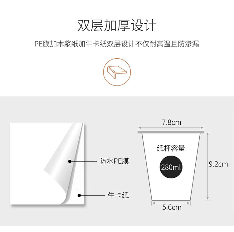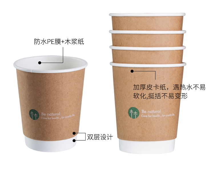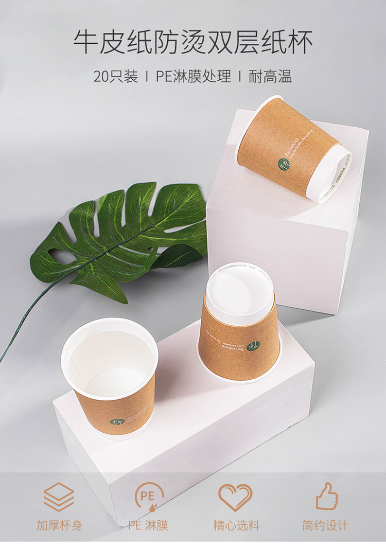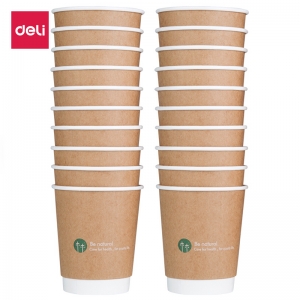 得力 (deli) 19204 20只280ml双层一次性纸杯 加厚办公水杯 棕色