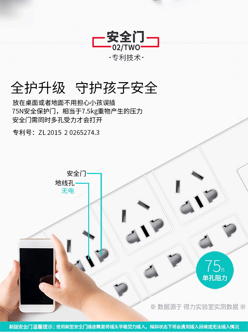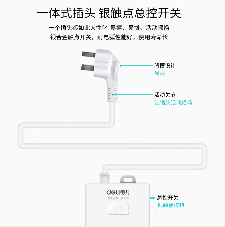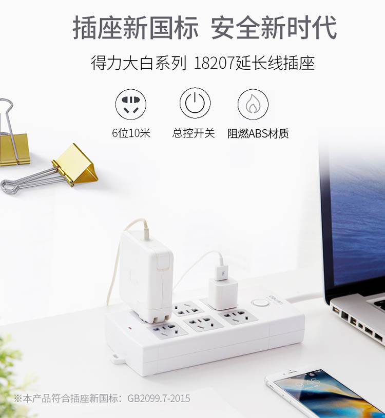 商品名称:得力 18207 防触电拖线板