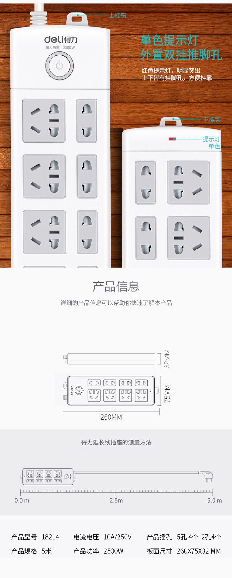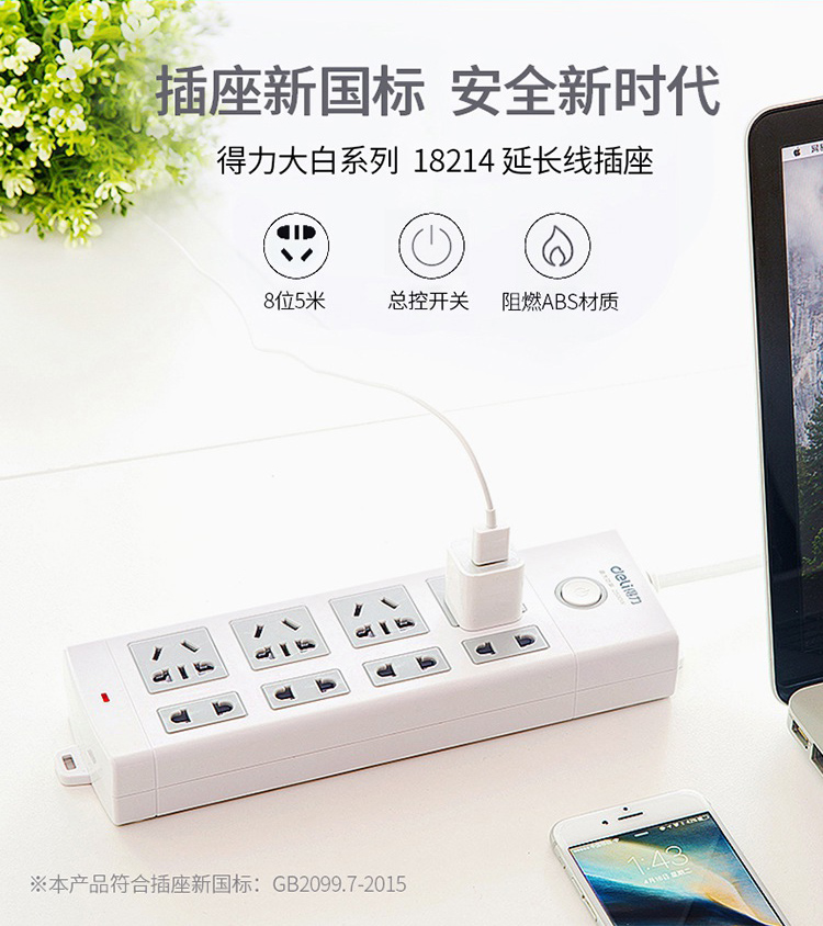商品名称:得力(deli)18214 新国标8位5米