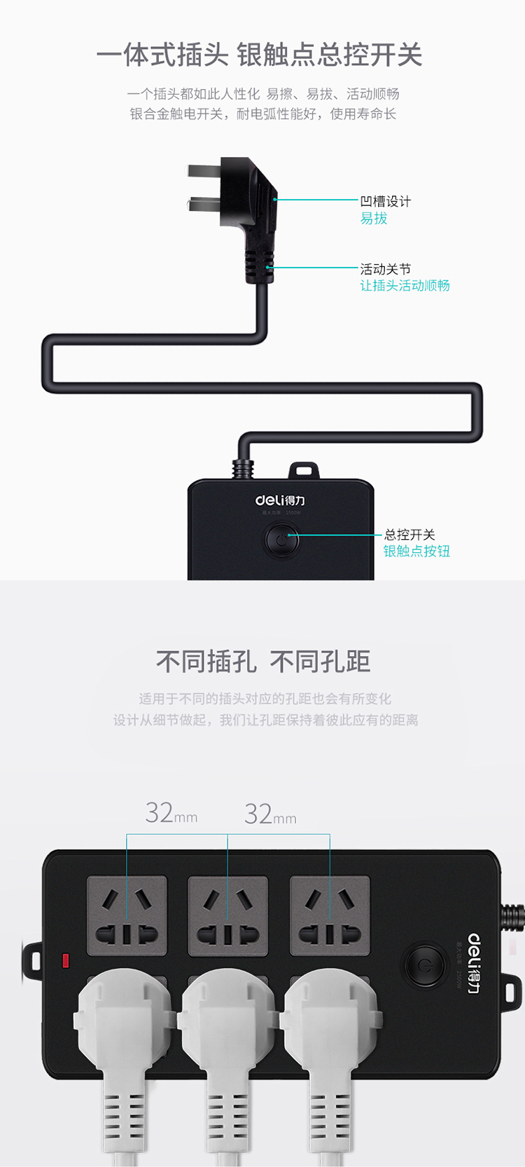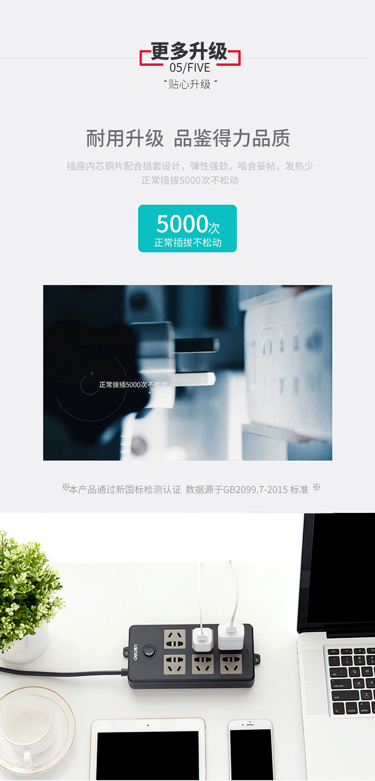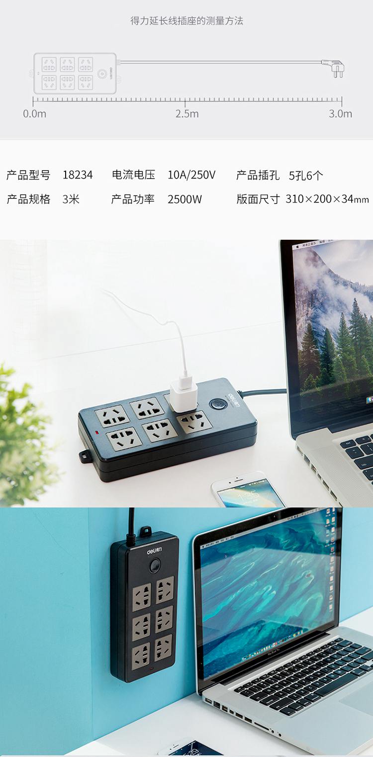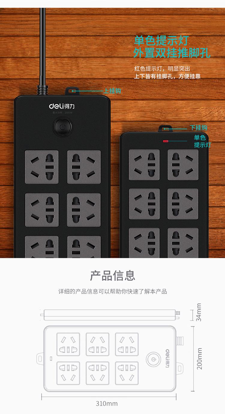 商品名称:得力(deli)18234 新国标6位组合孔3米