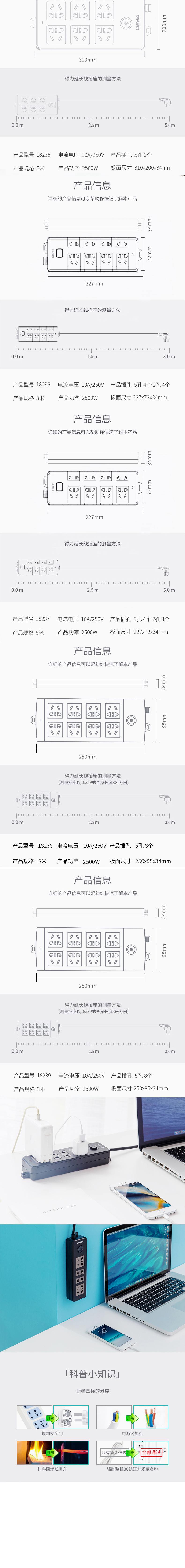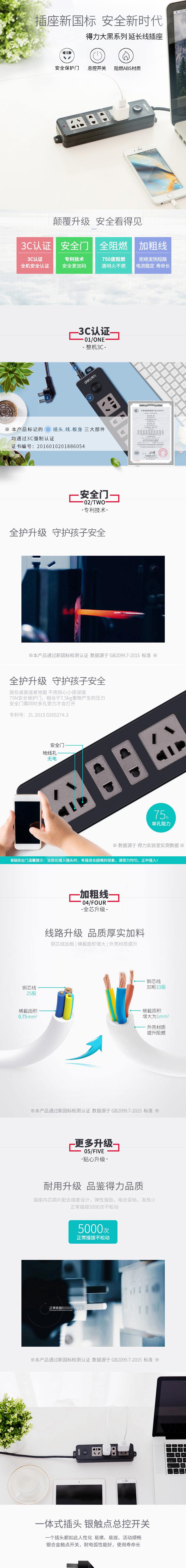 商品名称:得力 18236 黑牛系列插排 拖线板防触电 4+4孔 全长3米