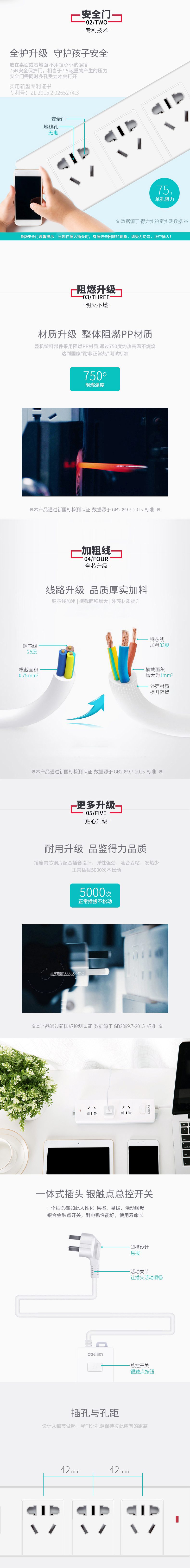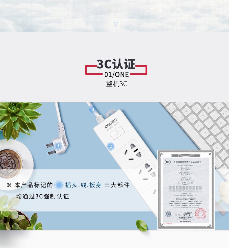 商品名称:得力 (deli) 新国标 防触电 总控开关 延长线插座