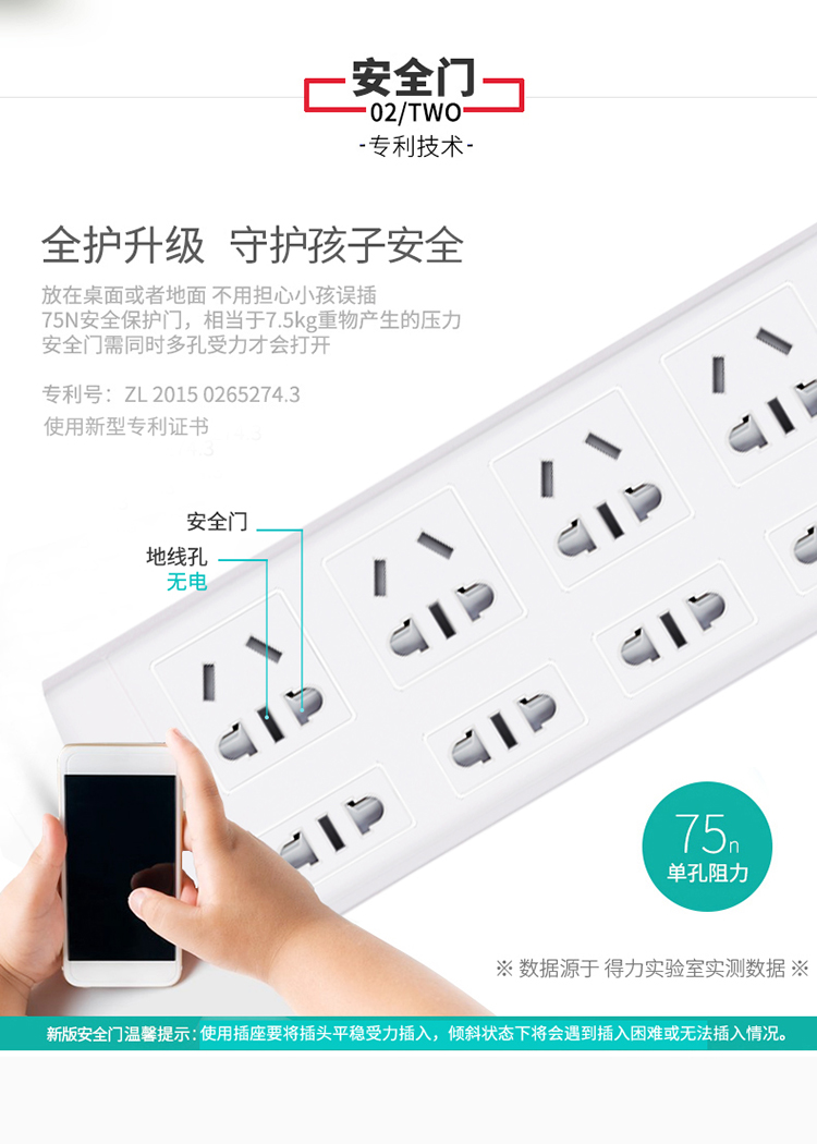 商品名称:得力(deli)3983 新国标防过载8位5米 大孔距总控开关插座