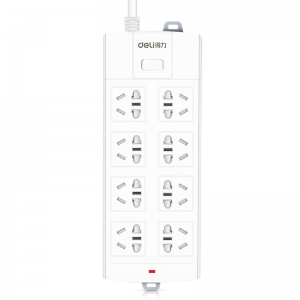 商品名称:得力(deli)3996 新国标防过载8位组合孔3米 大孔距总控开关插座