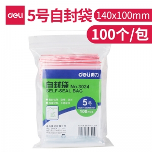 得力 3024塑封袋/自封袋/包装袋/夹链袋/加厚密封 100个/包 透明 (5号/140*100mm)