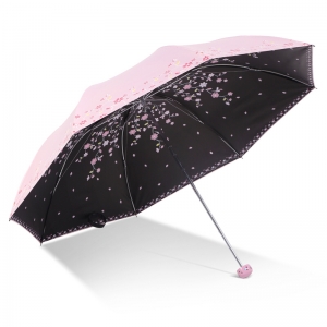 - 商品名称:天堂伞 轻巧便携 三折叠 黑胶防晒遮阳伞 花瓣雨声 2#粉红