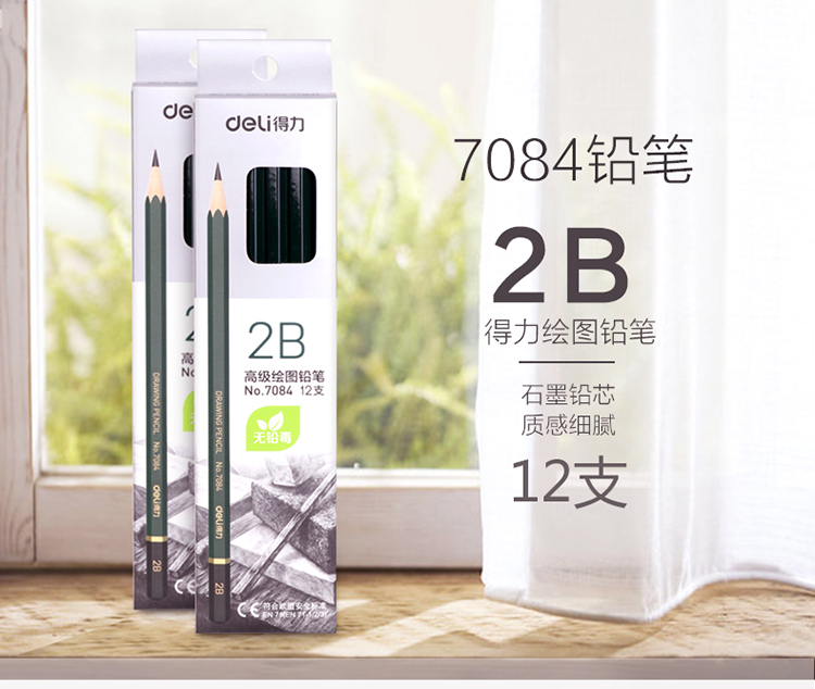 商品名称:得力(deli) 7084 2B木质铅笔 12支/盒 (计价单位:支)