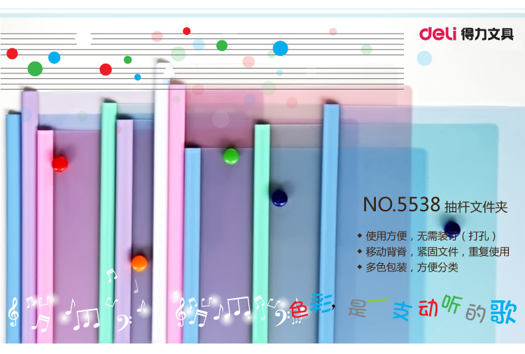 商品名称:得力(deli)5538 A4透明抽杆资料夹 拉杆夹防水 绿色 10个/包