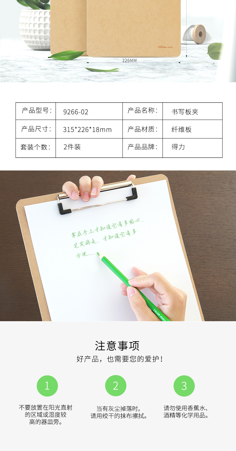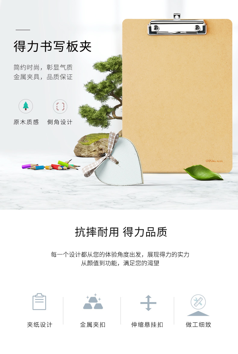 - 商品名称:得力 (deli) 9266 A4塑料板夹 带刻度