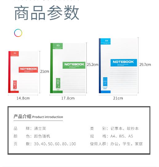 商品名称:通立莱(Tonlil) A5 40页 软皮胶装笔记本 10本/包 (计价单位:本)