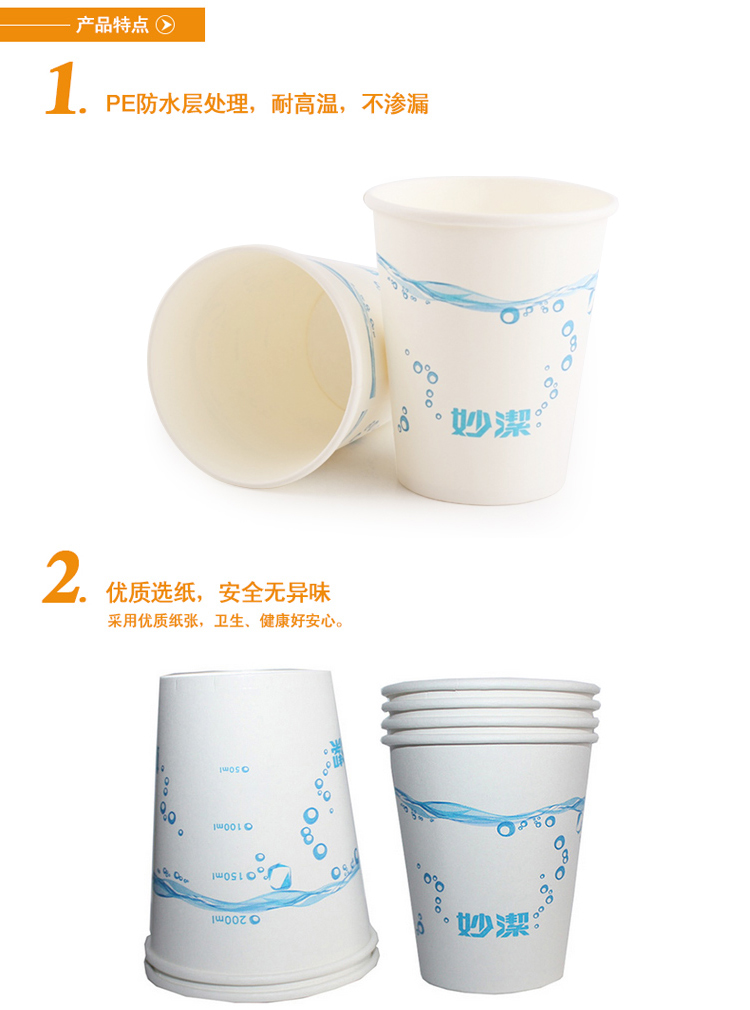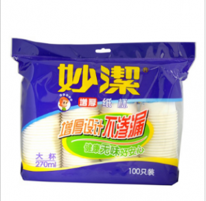 商品名称:妙洁 一次性纸杯大号 270ml 100只装