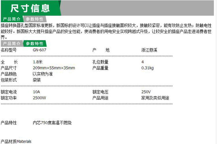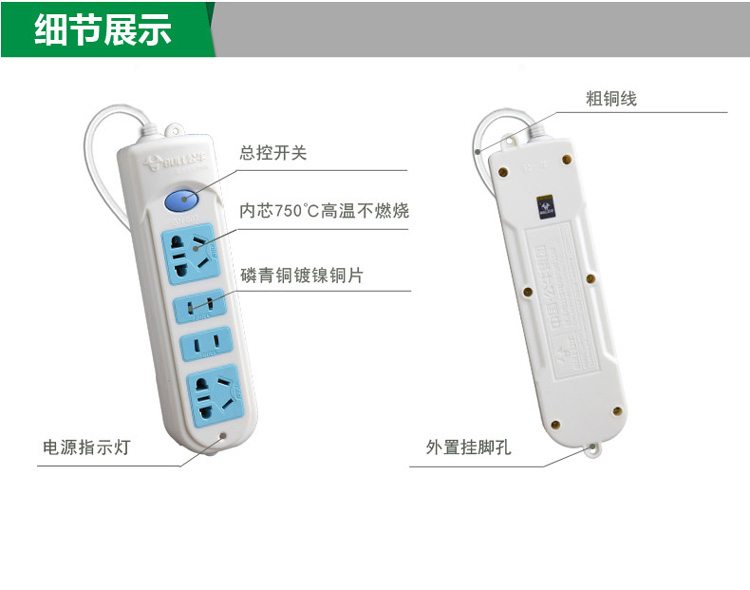 - 商品名称:公牛 GN-607 4位1.8米总控插座/插线板