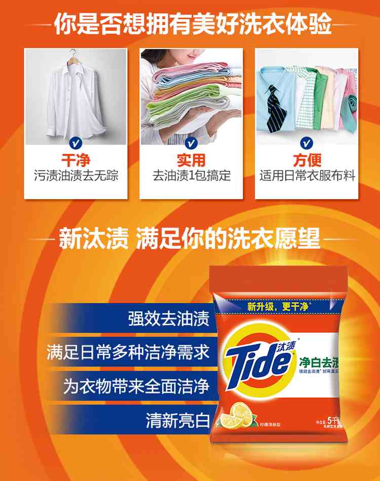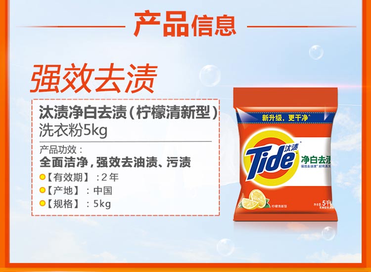- 商品名称:汰渍 净白去渍洗衣粉(柠檬清香)5kg/袋