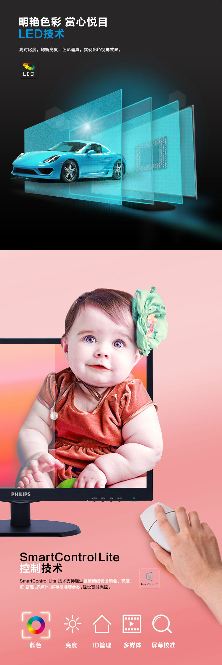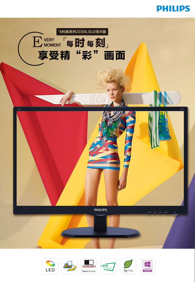 飞利浦(PHILIPS)21.5英寸 TN面板 LED背光 电脑液晶显示器223I5LSU2