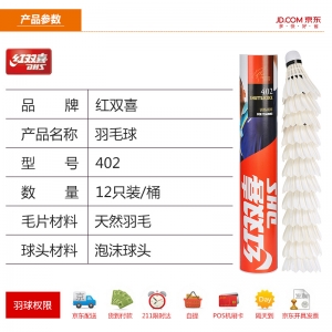 - 商品名称:红双喜(DHS) 402 羽毛球耐打训练羽球 12个装